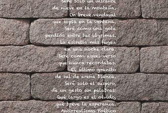 Seré solo un instantede nieve en la montaña.Un breve vendavalque sopla en la ventana.Seré como una gotaperdida entre tus lágrimas.La estrella más fugazen una noche clara.Seré como aquel versoque nunca recordabas.El último granitode sal de arena blanca.Seré solo el suspiro,de un gesto sin palabras:Qué largo es el olvido,qué breve la esperanza.