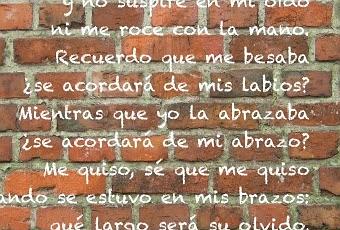 Ella también me queríaaunque ya me haya olvidadoy no suspire en mi oídoni me roce con la mano.Recuerdo que me besaba¿se acordará de mis labios?mientras que yo la abrazaba¿se acordará de mi abrazo?Me quiso, sé que me quisocuando se estuvo en mis brazos:qué largo será su olvido,qué poco duró aquel sábado.