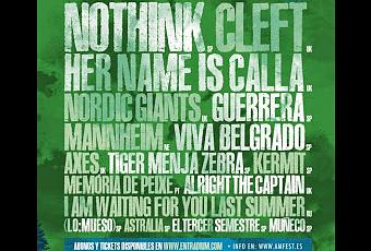 El cartel completo lo integran Nothink (Madrid), Guerrera (Galicia), el post-rock de Her Name is Calla (UK), el math de Cleft (UK), Nordic Giants (UK), Mannheim (NE), Viva Belgrado (Córdoba), Tiger Menja Zebra (Granollers), Memória de Peixe (PT), El Tercer Semestre (Sabadell), Muñeco (BCN), Kermit (Málaga), (lo:muêso) (Premià de Mar), Alright the Captain (UK), I was waiting for you last summer (RU), Astralia (BCN) y Axes (UK).
