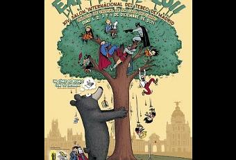 Madrid, 5 de octubre de 2011. El Palacio de Cristal de la Casa de Campo de Madrid se prepara de nuevo para recibir un auténtico aluvión de incondicionales del noveno arte. Y es que los próximos 1, 2, 3 y 4 de diciembretendrá lugar el XIV Salón Internacional del Tebeo de Madrid – Expocómic 2011, una edición que llega a la capital con energías renovadas gracias al aumento de público constante durante los últimos años, una afluencia que ha convertido el evento en cita imprescindible para los amantes de la viñeta de todo el país. En esta ocasión el cartel corre a cargo de Émile Bravo, que por supuesto acudirá al Salón para deleite de los asistentes; para ilustrar esta nueva fiesta del cómic, el autor se ha mantenido fiel a la línea defendida tradicionalmente por la AEAC que integra al popular oso pardo que simboliza la ciudad, agitando el no menos característico madroño para desgracia de los personajes que reposan en sus ramas.