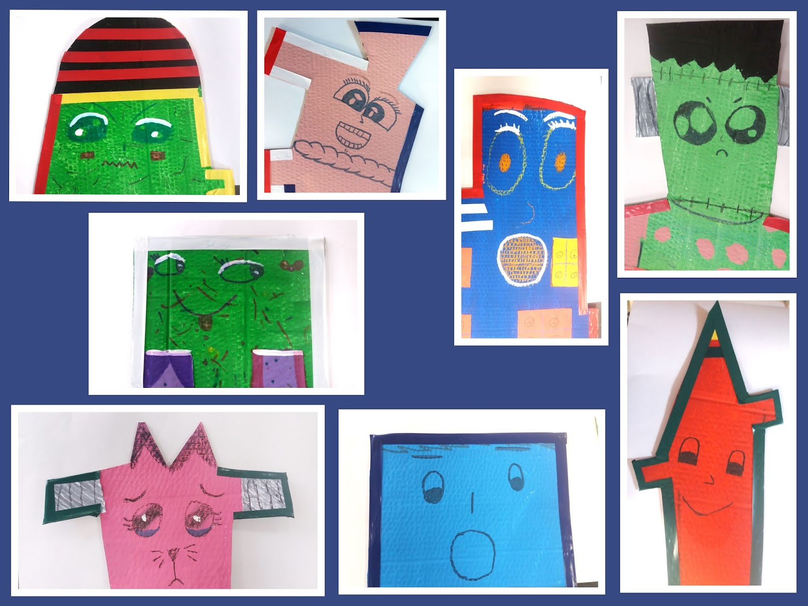En los edificios terminados se observan los aportes creativos de los estudiantes, como las ventanas con cortinas y personas, también texturas visuales.