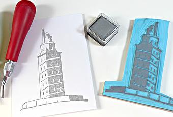 Cómo ves, hoy te he puesto todo a mano para que no sea una excusa para hacer tus propios sellos. Además, si no te gusta el sello que he hecho, ya sea porque no es tu estilo o no vives en Coruña, te dejo un artículo donde te doy ideas de como conseguir imágenes bonitas para carvar e incluso te comparto muchas de las láminas que yo utilizo para hacer mis propios sellos. "Descarga de láminas y tips"