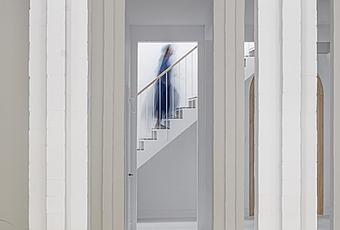 La propuesta se define en dos decisiones básicas, por un lado, promover la privacidad en sección asignando a cada uno de los tres niveles un perfil de usuario y por otro lado, la casa se relaciona con el exterior a través del jardín, situando en la fachada de la calle el gran espacio de la escalera. Ambas decisiones permiten que las plantas sean prácticamente diáfanas y que el espacio de escalera pueda funcionar como un patio favoreciendo la ventilación natural y limitando el ruido y molestias de la calle.