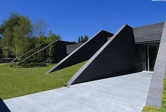 Otra de las casas A-cero que sorprende. Este diseño se integra al terreno compensando el impacto que una casa amplia hecha de concreto causa en el suelo. Según desde donde se la mire esta casa produce efectos diferentes en el observador. En este proyecto la ecología fue tenida en cuenta.