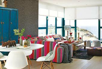 Lejos de quedarnos con espacios luminosos, ibicencos, blancos o al natural, hoy despedimos la semana, con un aire dinámico, divertido, y con una casa a todo color…y con vistas. Si ayer, nos perdiamos buscando casa en la playa…hoy al menos la encontramos con vistas. Inmejorable, atrevida y con mucho aire y estilo.