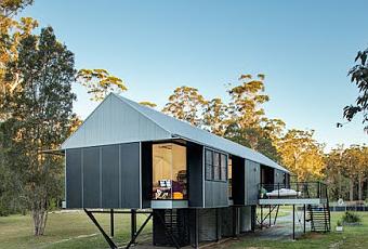 La casa tiene una morfologia moderna y original, y esta construida en madera y acero.