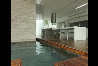 Externamente la vivienda se ve como un bunker cerrado, pero internamente tiene una gran vida organica, la casa es obra del estudio de los arqts. Connel y Botteri