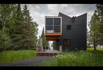 Casa tipo cabana, de diseno y morfologia moderna y actual, disenada por el arquitecto David Salmela, en un area de campamentos en el Lago Superior de Wisconsin, USA.