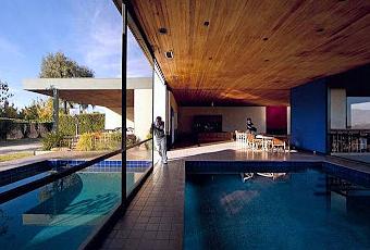 Piscina cubierta y descubierta en casa californiana de arquitectura moderna