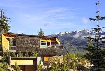 Casa original ubicada en un terreno en pendiente en las montanas de Canada.