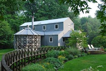 Conjunto arquitectónico rural de diseño impecable que impresiona de mayor escala que la real y destaca la identidad lograda de construcciones campestres norteamericanas.