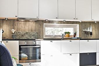 La cabana esta totalmente construida en madera, con un tono grisado interior y detalles de buena factura, con un gran deck como extension.