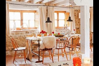 La casa fue remodelada totalmente, manteniendo su caracter, con cambio de carpinterias, se pinto la estructura de gruesos maderos, en blanco, con artefactos de iluminacion muy caracterirsticos.
