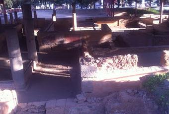 Desde el Atrio se llega a un peristilo con un estanque, también se puede ver el Aljibe que surtía el estanque y las fuentes de los patios, que se encuentra ubicado bajo una enorme habitación. Por otra parte encontramos una habitación subterránea para los tiempos del estío. Al este y apartado de la vivienda encontramos un conjunto termal.