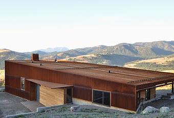La vivienda fue disenada por el etudio de arquitectura Johnston Arch, y esta desarrollada en chapa oxidada avejentada en el exterior y en madera por el interior.