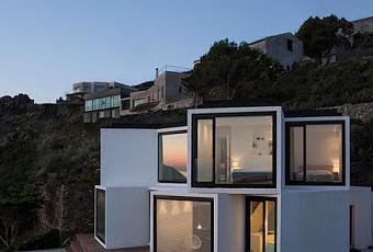 La vivienda, algo atipica volumetricamente, fue disenada por el conocido estudio de arquitectura espanol Cadaval y Sola-Morales.