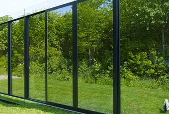 La residencia tiene una superficie de 120 metros cuadrados, y constituye un volumen sintetico de vidrio reflejante que le da a la vivienda una sensacion de reserva interior.