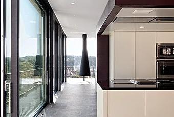 La casa esta construida en una fuerte pendiente, por lo que se aprovecharon los niveles, y esto a favorecido aprovechar hermosas vistas desde los grandes ventanales.