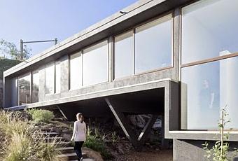 Casa muy moderna, en hormigon, frente a las aguas del Pacifico , en Chile.