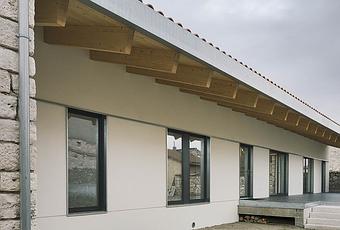 El proyecto reconoce el lugar, su memoria y el valor del material en ruinas. Técnicas constructivas locales conviven con estrategias tradicionales implementadas que remiten a la tradición vernácula. Una retícula estructural de hormigón define la cota de apoyo, y sobre esta el cascarón ligero de cubierta define geometría, volumen, y materialidad del espacio doméstico. Una fachada multicapa recupera la piedra caliza existente, y junto con un aislamiento generoso que elimina los puentes térmicos conforma un cerramiento de gran inercia que aprovecha la oscilación térmica día/noche. La altura de techo y disposición de huecos facilita la ventilación cruzada y el efecto chimenea según la estación, mientras que un hogar central produce y distribuye calor durante los meses fríos.