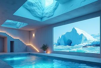 Al cruzar la puerta de la Casa Iceberg, te recibe un entorno que parece sacado de una película de ciencia ficción. Las paredes, que a primera vista parecen meras superficies pulidas, se transforman en pantallas gigantes con tecnología OLED 8K, listas para proyectar desde tus series favoritas hasta paisajes interactivos que responden al movimiento.