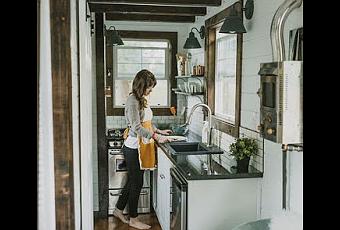 Es una casa muy pequena, con mucho encaanto y un estilo rustico, con estructura a la vista y mucho blanco e iluminacion.