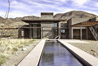 La extensa y lujosa vivienda es respetuosa del medio ambiente, tiene sus suelos de piedra y tierra, y los muros de contencion estan constituidos por gaviones.