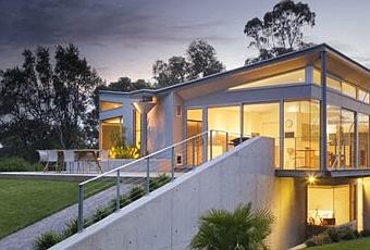 La casa esta construida como un gran voladizo, totalmente vidriado, que hace a la vivienda transparente.