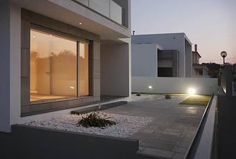 Casa moderna entre medianeras, resuelta con 2 frentes, la fachada y el contrafrente.