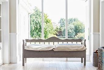 Blancos, maderas y pasteles, con gusto rustico y toques de piezas de estilo industrial,  en una gran casona de West Sussex.