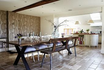 Clara, abierta y espaciosa, con una decoracion tipicamente inglesa de campo.