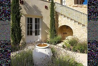 Construida en piedra y con detalles interesantes de herreria y madera sin pulir, y muy buen mobiliario, es una encantadora mansion que rescata la arquitectura mediterranea.