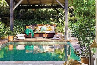 Casa rustica espanola, tradicional y muy elegante, con mobiliario de maderas nobles y sillones de rattan. La casa tiene una enorme galeria que da a una extensa pileta y que prolonga la vivienda hacia el jardin, un jardin cargado de especies vegetales y flores. Tanto los artefactos de iluminacion como el mobiliario son de diseno clasico y etnico, muy elegante.