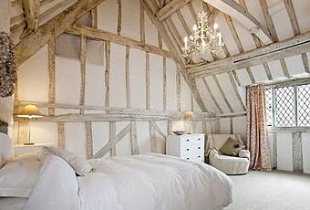 Esta es la vista de una vivienda rustica estilo Tudor en venta en la ciudad de Exeter, Inglaterrra.Es interestante ver sus vigas y columnas de maderos sumamente rusticos del siglo XVI, y sus muros de relleno, que dejan pequenos banos para iluminar y ventilar.