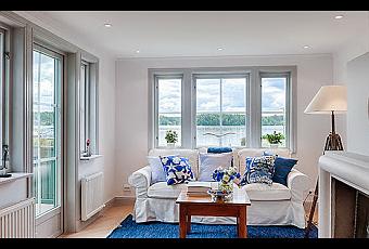 Los interiores son tradicionales, muy blancos, y con algunos toques de color, con mobiliario tipico escandinavo