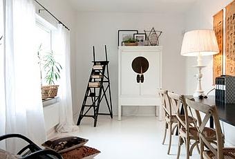 Esta es una tipica vivienda suburbana sueca, con interiores rusticos y modernos a la vez, en un clasico color blanco y negro.