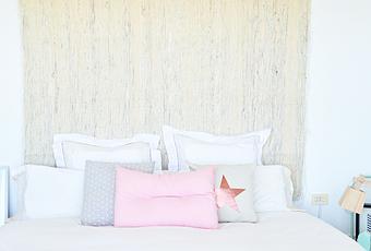 Habitualmente se utilizan sobretodo como alfombras o, incluso, como cortinas, pero Diana la ha colocado como cabecero y queda perfecta para cubrir ese espacio y darle mucha más vida a la pared. Además, ha completado el conjunto con un mix de cojines de Boho Deco Shop que son la guinda perfecta. En especial nos pirra el de la nueva colección en rosa cuarzo, ¡color de temporada, y éxito asegurado!