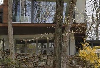 La casa, ubicada en medio de un bosque muy cerrado de Armonk, New York, USA, fue remodelada ultimamente por el estudio Gluck +, pero ya habia sufrido una transformacion algo caotica en 1980.