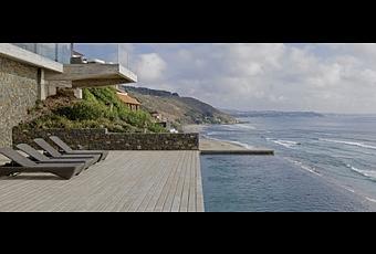 La vivienda esta construida en hormigon armado , muros de piedra, y vidrio, con amplias visuales al Oceano Pacifico.