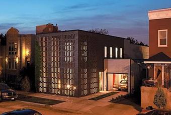Casa urbana en un lote pequeño de Chicago, cubierta por una fachada de ladrillos calada mostrando un patrón ondulantemoderna casa