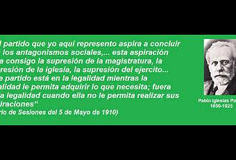 Pablo Iglesias, fundador del PSOE reconocía claramente que alcanzar sus ideales llevaba consigo la supresión de la magistratura, de la Iglesia, del ejército y otras instituciones, agregando "Este partido (el PSOE) está en la legalidad mientras la legalidad le permita adquirir lo que necesita; fuera de la legalidad cuando ésta no le permita realizar sus aspiraciones" (Diario de Sesiones del 5 de mayo de 1910).