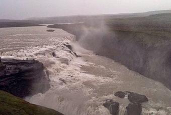 Dejamos la zona geotermal de Geysir en dirección Gullfoss, la catarata más grande de Europa situada en el cañón del río Hvítá, en el sureste de Islandia. Es conocida como la Cascada Dorada. Pertenece al famoso círculo dorado junto con Geysir y Thingvellir.