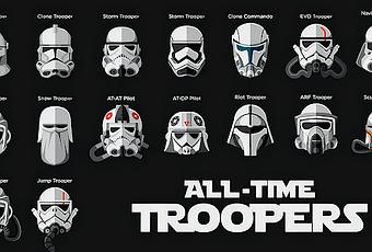 Empezamos el día de hoy, que va a ser relajado (Hoy estoy bastante machacado...), con este póster donde salen todos (O eso parece) los cascos de soldados imperiales de Star Wars desde el principio.Lo ha colgado Elena Ferver.