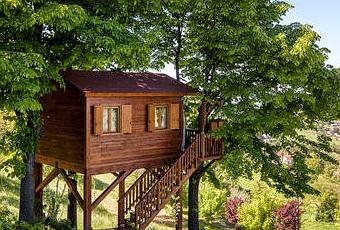 Monferrato es una zona de cultivos de vides para vino, alli esta ubicada esta pequena cabana de madera que se alquila para turismo.