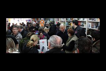 El caso más reciente que conozco es el de una librería de Viladecans cuyo propietario estaba pensando en cerrar por la crisis. La iniciativa del Cash-mob ha sido complementada con un manifiesto leído por un grupo de escritores ante las puertas de la librería.