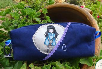 Ya la primera noche la más pequeña me dijo que quería que le hiciera una cosa (pincha aquí si quieres conocer a Teresa). Tenía las ideas muy claras. Y es que se había enamorado del maletín para ordenador que hice con la tela de las gorjuss. Así que quería un estuche para el colegio con esa misma tela. Y además sabía el tamaño de su estuche, la forma y los bolsillos que necesitaba tener para guardar bien sus cosas y no perder el tiempo buscándolas.