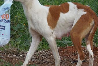 Estaba con un macho (podenco de máximo 10 kg) al que no se le ve desde hace una semana.