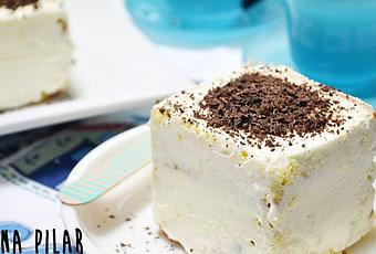 - Cuando tengamos todas las cassatas formadas, las cubrimos con una fina capa de nata montada y queso, y decoramos con chocolate negro rallado.