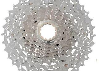 Es importante señalar que los seis piñones de mayor tamaño se encuentran instalados sobre un portador de aluminio. Este producto consigue aligerar el peso en general y aumenta la firmeza, ambas características muy valorables en la elección de cassete. Esta pérdida de peso general se consigue también mediante la perforación de los piñones, como se puede observar en la fotografía.