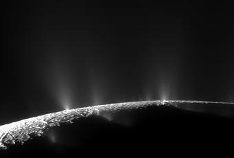 Se sabe que la pequeña luna posee un océanosubsuperficial, y el agua de ese océano entra en erupción a través de grietas en la corteza helada de Encélado como géiseres en su polo sur, creando una columna de partículas heladas. El penacho luego alimenta el anillo E de Saturno (un anillo débil fuera de los anillos principales más brillantes) con partículas heladas.